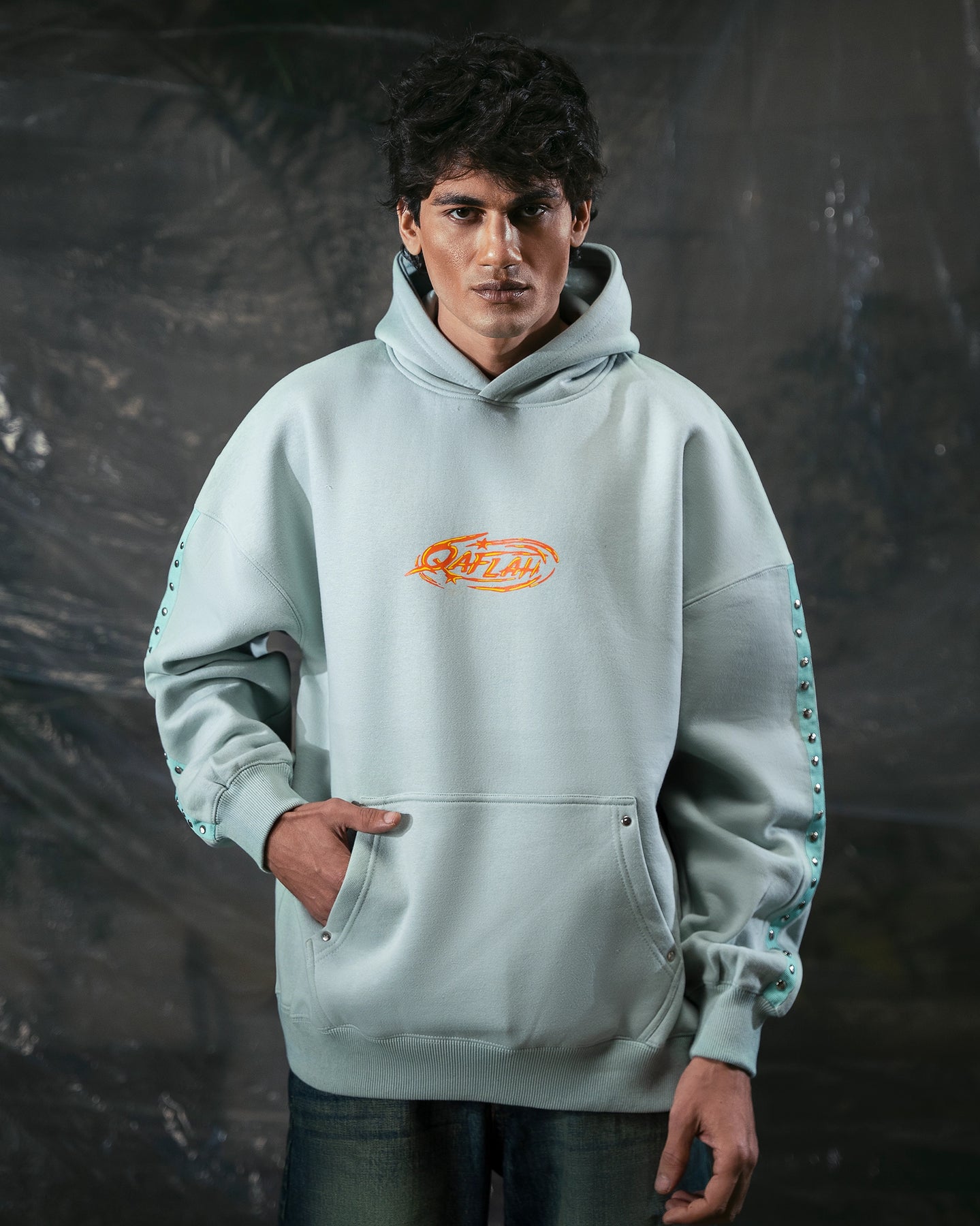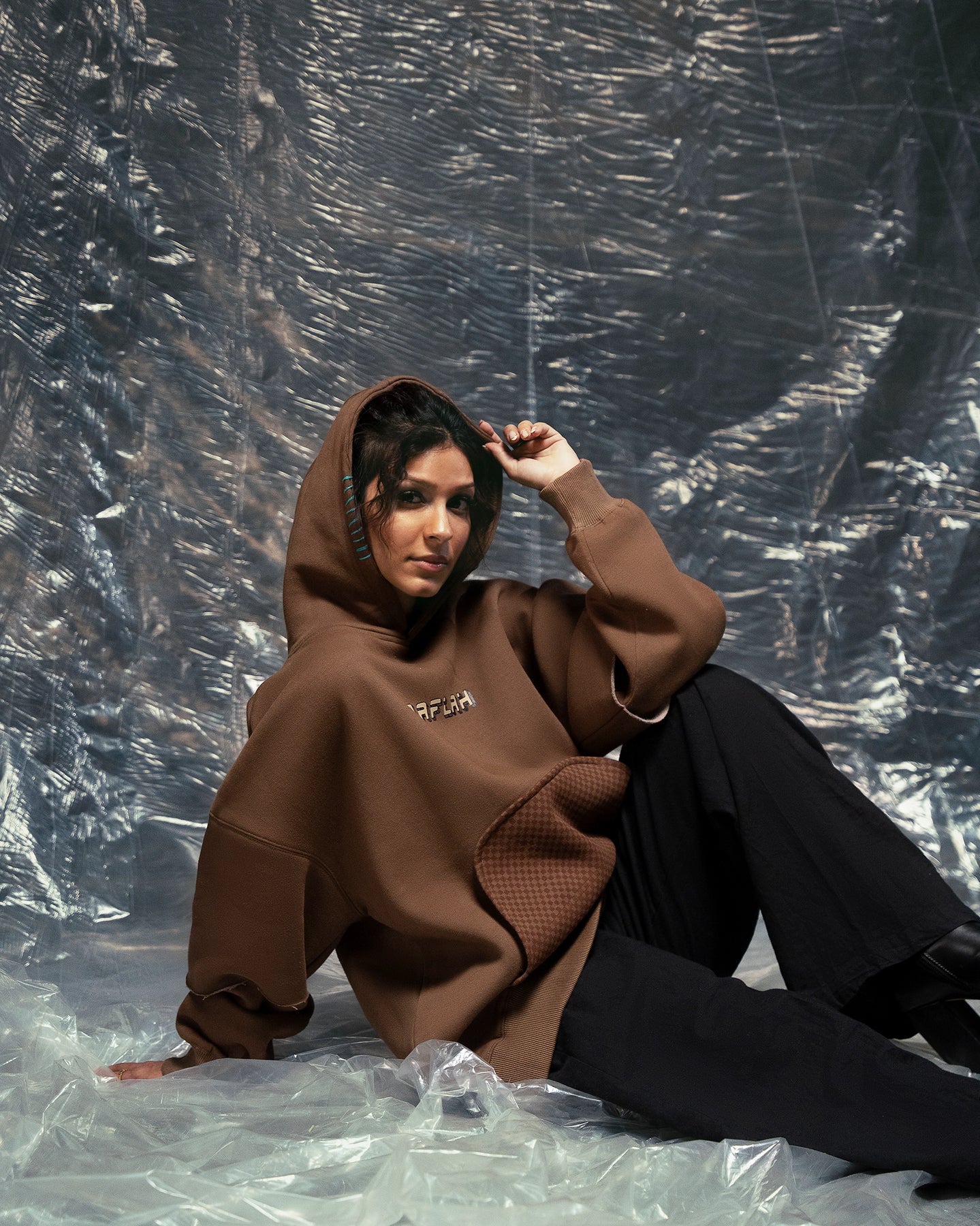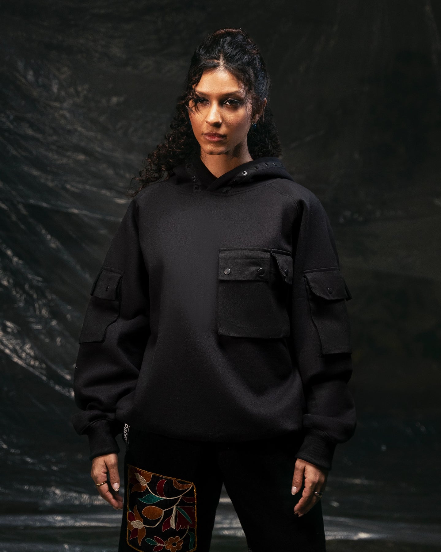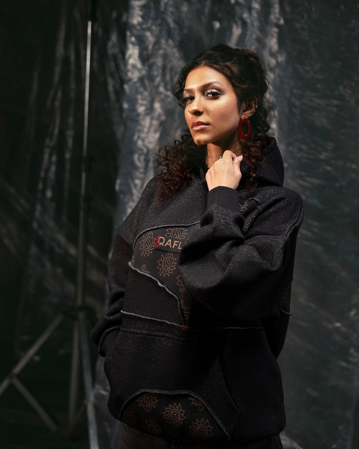 The Going Back to Venus Hoodie is a bold fusion of futuristic storytelling and South Asian visual culture, crafted for those who love statement pieces with meaning. Made in a soft sage tone, this hoodie stands out through its vibrant artwork and unique construction details.