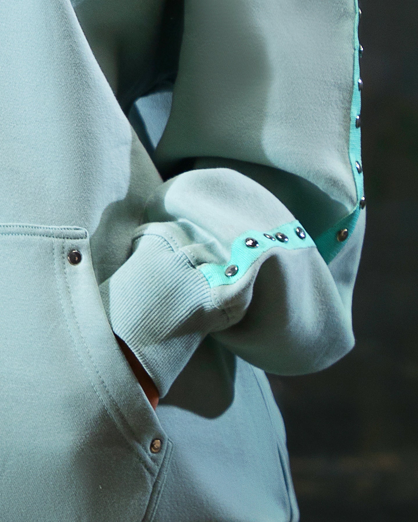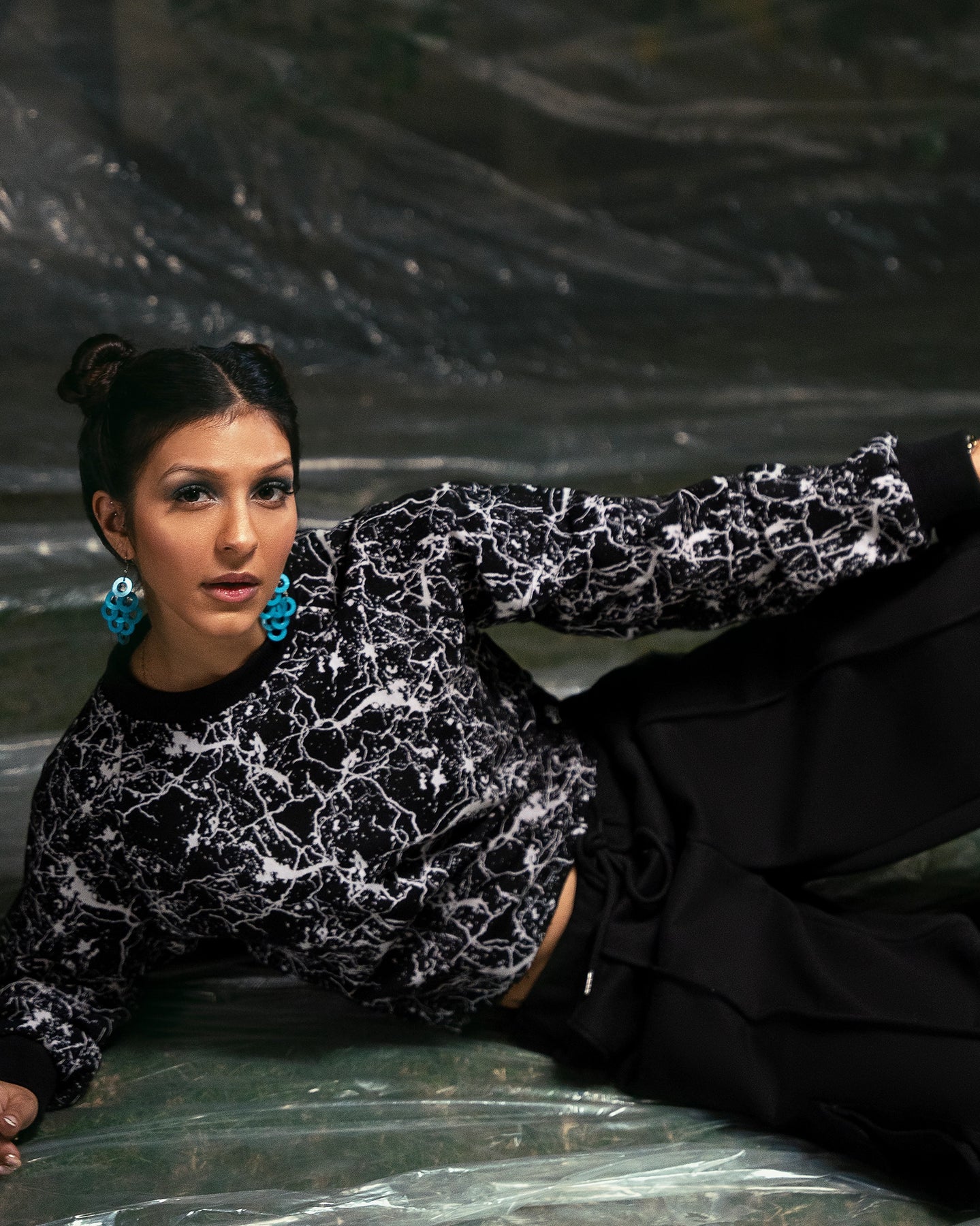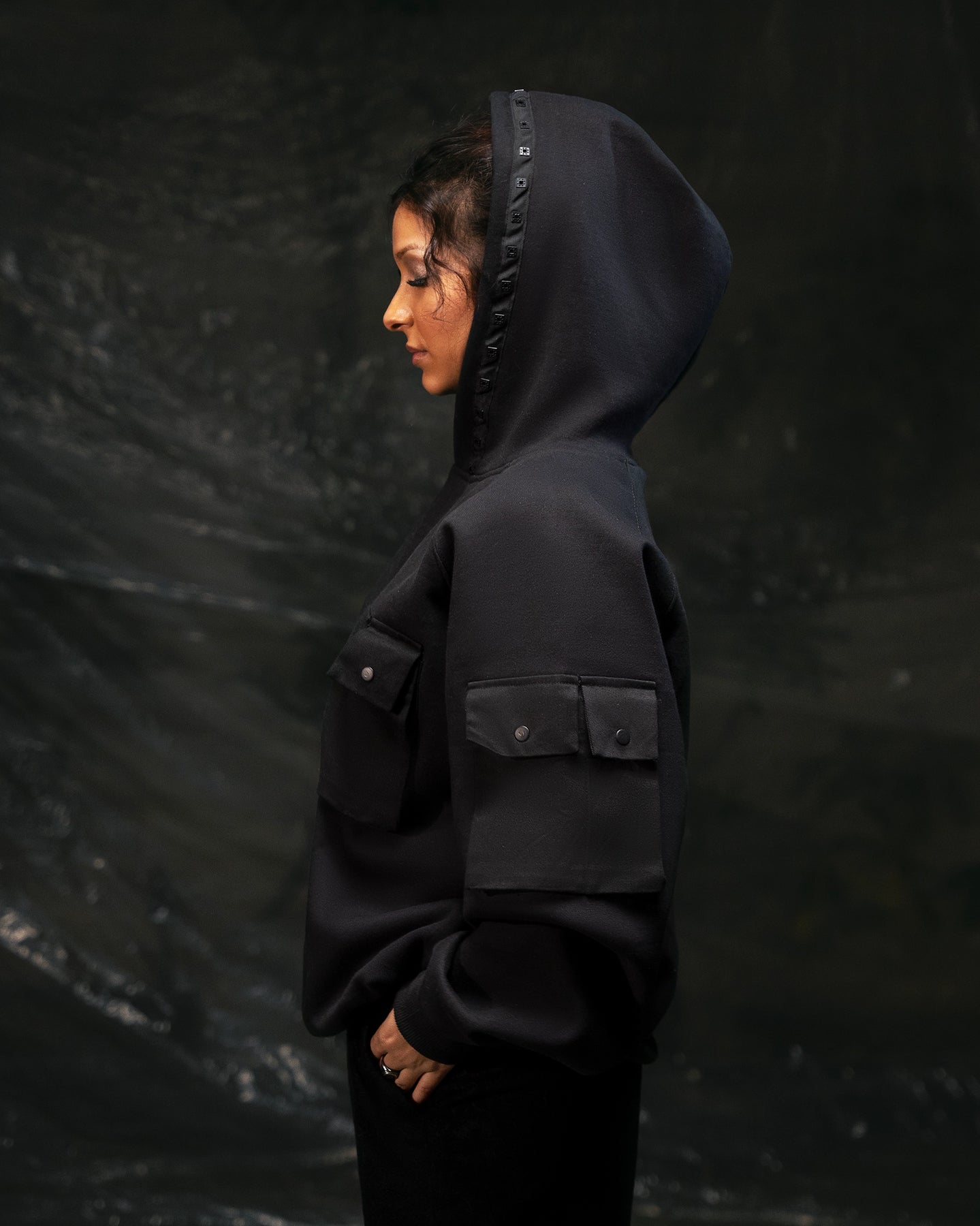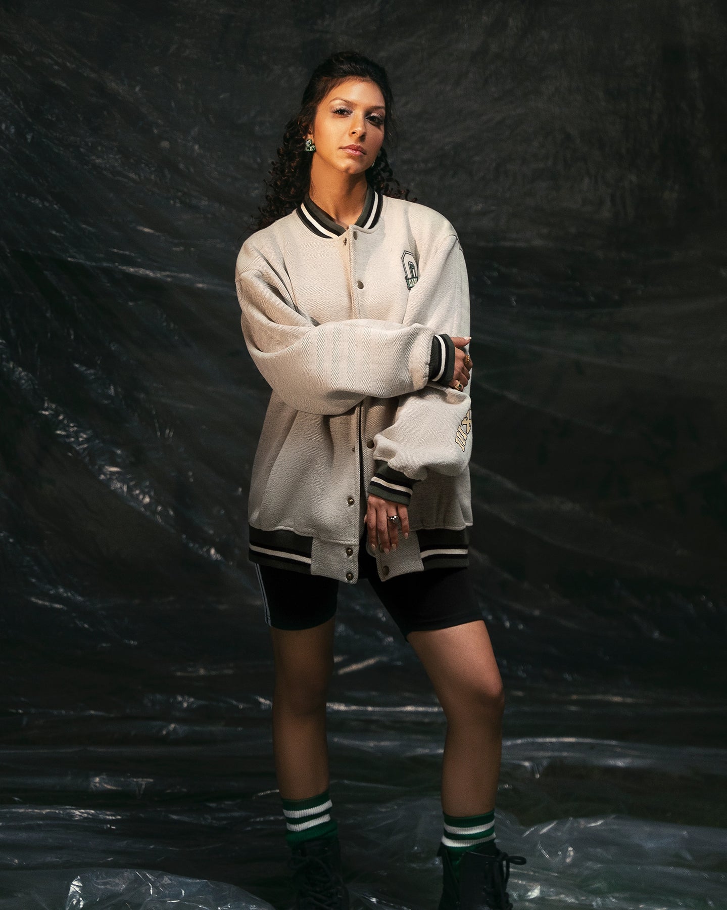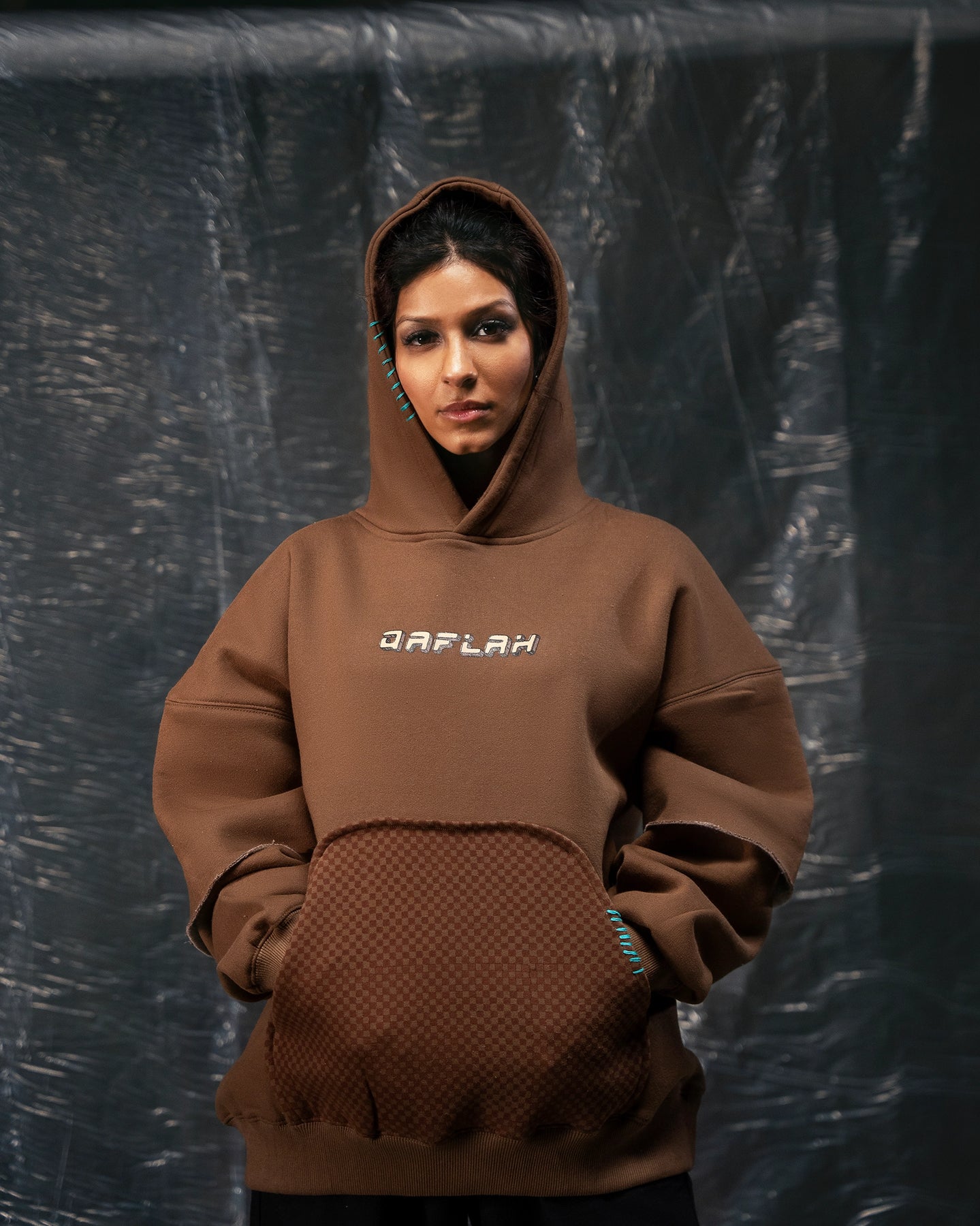 The Going Back to Venus Hoodie is a bold fusion of futuristic storytelling and South Asian visual culture, crafted for those who love statement pieces with meaning. Made in a soft sage tone, this hoodie stands out through its vibrant artwork and unique construction details.