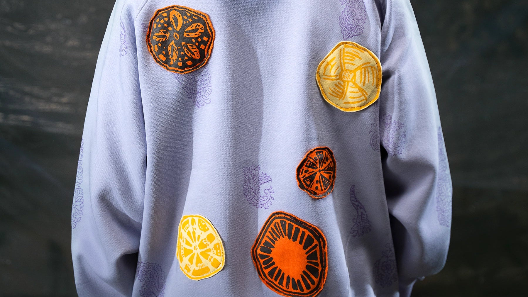 The back showcases the star of the piece — a vibrant, multi-layered screenprint titled Going Back to Venus. The artwork blends cosmic themes, desi motifs, and neon palette elements to create a visually rich narrative of exploration and identity.